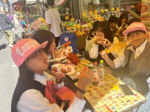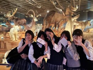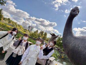 シロナガスクジラ像の前でクラス写真を撮影後、上野動物園や国立科学博物館、アメ横などに別れて散策。それぞれの場所でみんな楽しんでいました。