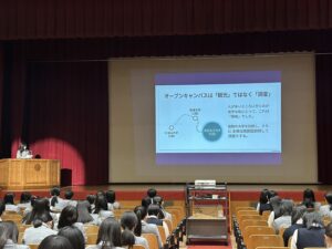 1・2年生にとっては、少し先の“自分の未来”。真剣な表情で話を聞き、一生懸命メモを取る姿が印象的でした。今日の学びが、これからの進路選択や日々の過ごし方につながっていくことを期待しています。