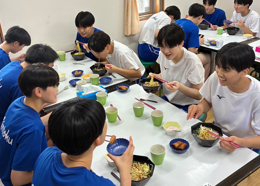 食事は朝晩は寮、お昼は食堂でとります。